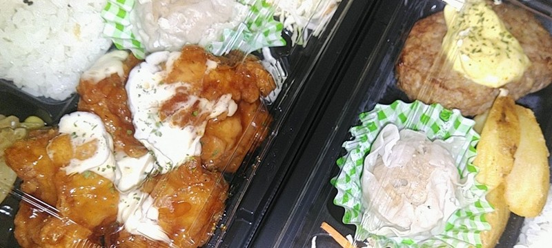 明日、12/23木曜日の「日替わりお弁当」は、Aが「なんとも魅力的な」白身フライの甘酢あんかけ、Bが「秋でもないけど」月見メンチカツです。
